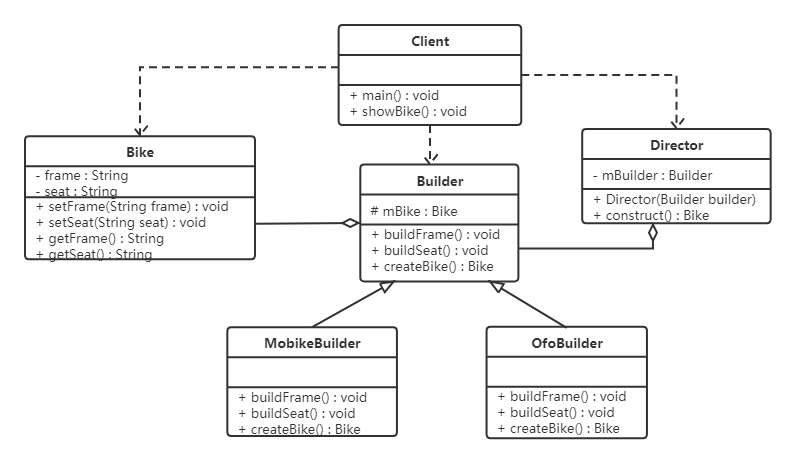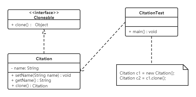 在UML类图中,双向关联用一个不带箭头的直线表示。上图中在Customer类中维护一个List<Product>,表示一个顾客可以购买多个商品;在Product类中维护一个Customer类型的成员变量表示这个产品被哪个顾客所购买。