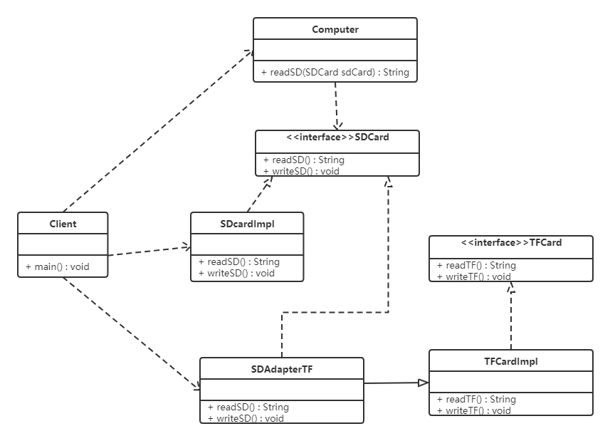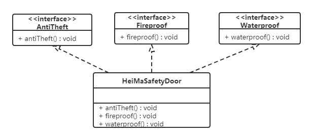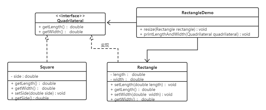 实现关系是接口与实现类之间的关系。在这种关系中,类实现了接口,类中的操作实现了接口中所声明的所有的抽象操作。