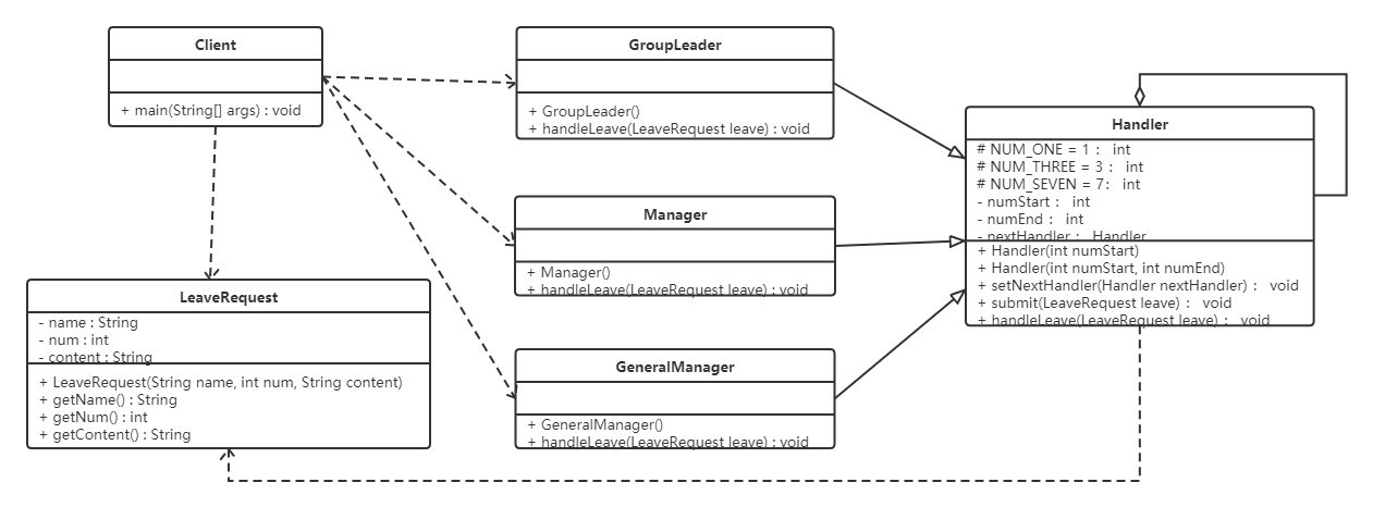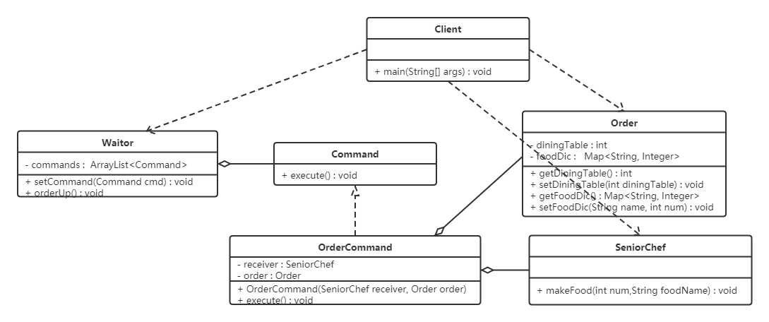 依赖关系是一种使用关系,它是对象之间耦合度最弱的一种关联方式,是临时性的关联。在代码中,某个类的方法通过局部变量、方法的参数或者对静态方法的调用来访问另一个类(被依赖类)中的某些方法来完成一些职责。