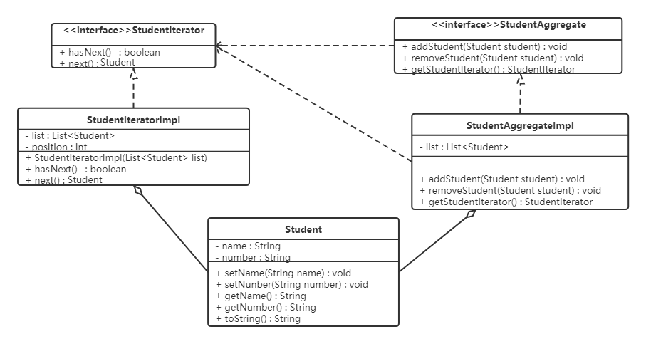 - 迭代器模式。对于MutablePropertyValues类定义使用到了迭代器模式,因为此类存储并管理PropertyValue对象,也属于一个容器,所以给该容器提供一个遍历方式。