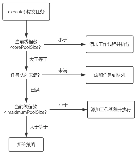 - 线程池中的线程执行完当前任务后,会循环到任务队列中取任务继续执行;线程获取队列中任务时会阻塞,直到获取到任务返回;